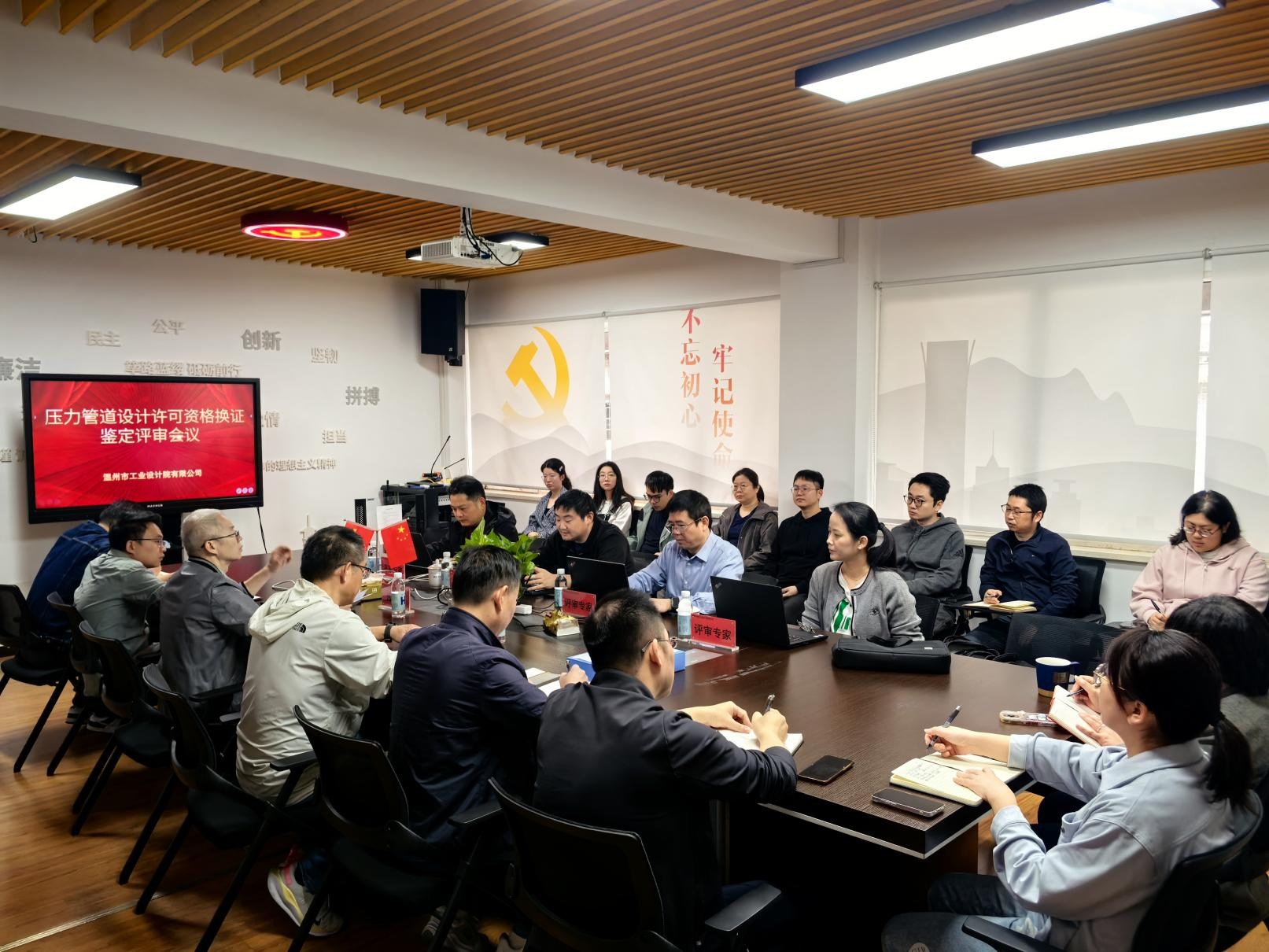近日,浙江省特种设备科学研究院组织专家对工业院进行了压力管道设计许可资格换证现场鉴定评审。经过两天的严格现场审核,公司顺利通过评审。公司总工程师应作霆、副总经理郭幸出席了评审会议。...